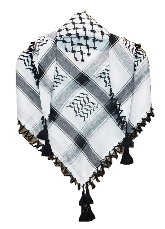 Black on White Palestinian Style Cotton Keffiyeh