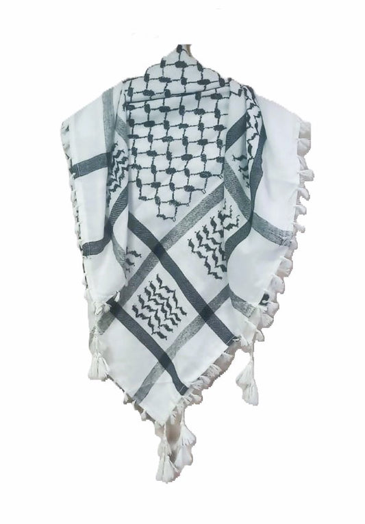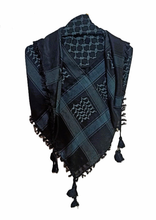 Grey on Black Palestinian Style Keffiyeh Scarf