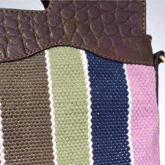 Genuine Leather & Canvas Crossbody - Tapestry Shoulder Bag